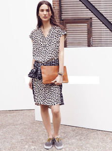 歐美時(shí)尚 100%人絲斑點(diǎn)豹紋印花V型小立領(lǐng)直身 無(wú)袖連衣裙 /