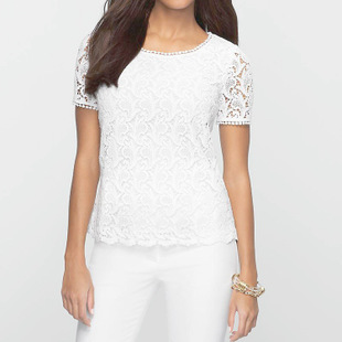 歐美風(fēng) 韓國(guó)進(jìn)口全棉水溶花花邊褸空短袖 女裝蕾絲衫 /