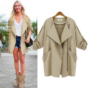 2015歐洲站新品薄款風(fēng)衣 胖mm超大碼寬松街頭女裝舒適薄外套1188 /