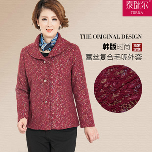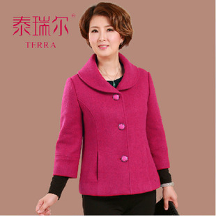 2015新款中老年女裝 外套羊毛呢春季新款時尚七分袖媽媽裝批發(fā) /
