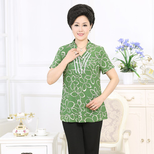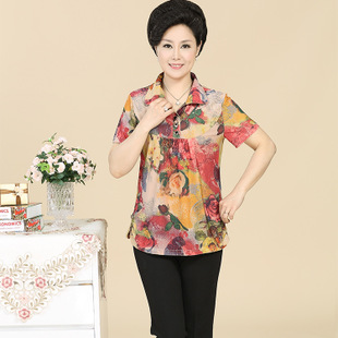 2015新款中老年女裝夏裝 短袖t恤女 翻領(lǐng)時(shí)尚印花媽媽T恤 批發(fā) /