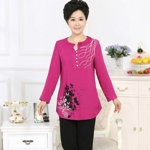 2015新款中老年女裝春裝上衣 長(zhǎng)袖T恤時(shí)尚媽媽印花打底衫批發(fā) /