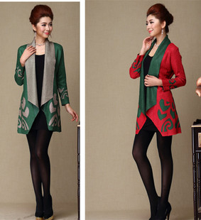 2015春秋新款皺褶桑蠶絲真絲拼色披風(fēng)大衣民族風(fēng)中長(zhǎng)款女裝外套 /