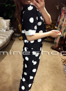 D家熟女小清新 黑色垂感面料波點套裝 白點黑底 現(xiàn)貨即發(fā) 爆款 /