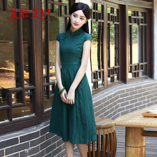 2015新款棉麻復(fù)古女士旗袍 連衣裙夏裝改良時尚氣質(zhì) 旗袍 夏季 /