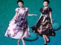 丹慕2014夏裝新款淑女氣質(zhì)彩虹收腰牡丹繡花大擺雪紡連衣裙02627 /