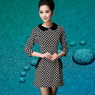 【卓瑪麗】一件代發(fā) 2014夏裝新款女裝 娃娃領(lǐng)千鳥格修身連衣裙 /