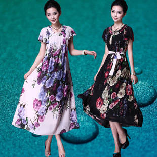 特價歐美女裝特大碼2014胖mm夏裙加肥加大顯瘦寬松雪紡連衣裙長裙 /