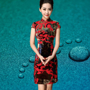 【卓瑪麗】一件代發(fā) 2014夏裝新款女裝 婆婆媽媽真絲絲絨婚宴旗袍 /