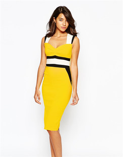 2015歐美 性感拼色 氣質(zhì)名媛 臀晚禮服 派對(duì)連衣裙 /