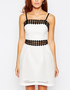 2015鏤空花紋拼接吊帶連衣裙白色黑色蕾絲邊吊帶網(wǎng)面收腰連衣裙 /