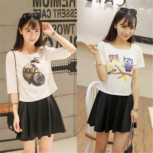 簡介: 貨源類別 現(xiàn)貨 主圖來源 實拍有模特 風格 歐美學院 圖案 印花 工藝 印花/印染 產(chǎn)地 廣州 庫存類型 整單 款式 基本款 組合形式 兩件套 裙長 短裙 裙型 A字裙 領型 圓領 袖型 常規(guī)袖 袖長 七分 腰型 中腰 上市年份/季節(jié) 2015夏季 面料名稱 混紡 是否庫存 是 貨號 1010 顏色 貓頭鷹短袖,貓頭鷹七分袖,檸檬短袖,檸檬七分袖 尺碼 S,M,L,XL,XXL 成分 棉 面料主材質含量 81%-90% 面料 混紡 面料次要材質分類 合成纖維 成分含量 95%以上 面料次要材質含量 81%-90% 面料主材質 棉花 面料次要材質 聚酯纖維(滌綸) 面料主材質分類 棉纖維