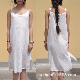 禧著 原創(chuàng)設(shè)計純棉背心吊帶連衣裙 百搭文藝例-外風(fēng)格 /
