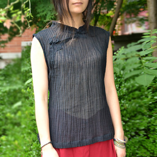 2015新款夏原創(chuàng)皺棉麻盤扣輕中式背心馬甲女裝 例-外無有左岸迷香 /