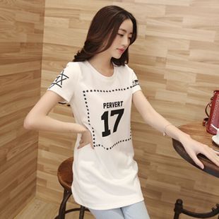 爆款新款夏裝韓版女裝短袖T恤女修身白色中長款體恤圓領打底衫 /