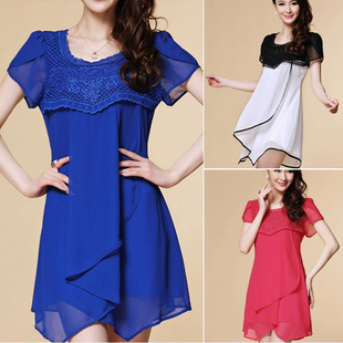 2014夏裝新款短袖寬松不規(guī)則大碼雪紡連衣裙刺繡裙子 /