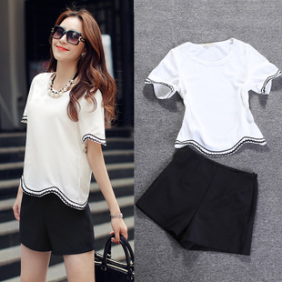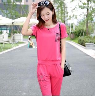 胖MM運動套裝女夏裝2015大碼女裝休閑士短袖韓版新款兩件套 /