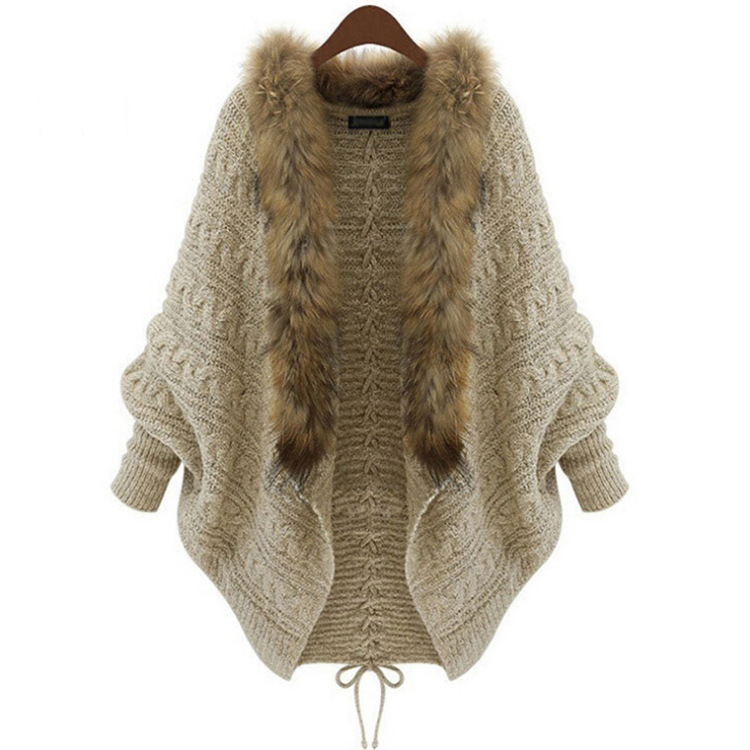2015秋冬歐美新款中長款針織開衫蝙蝠衫寬松毛衣外套女 /