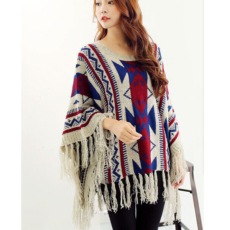 2015秋冬韓版新款大碼圓領斗篷披肩流蘇針織衫外套毛衣女 /