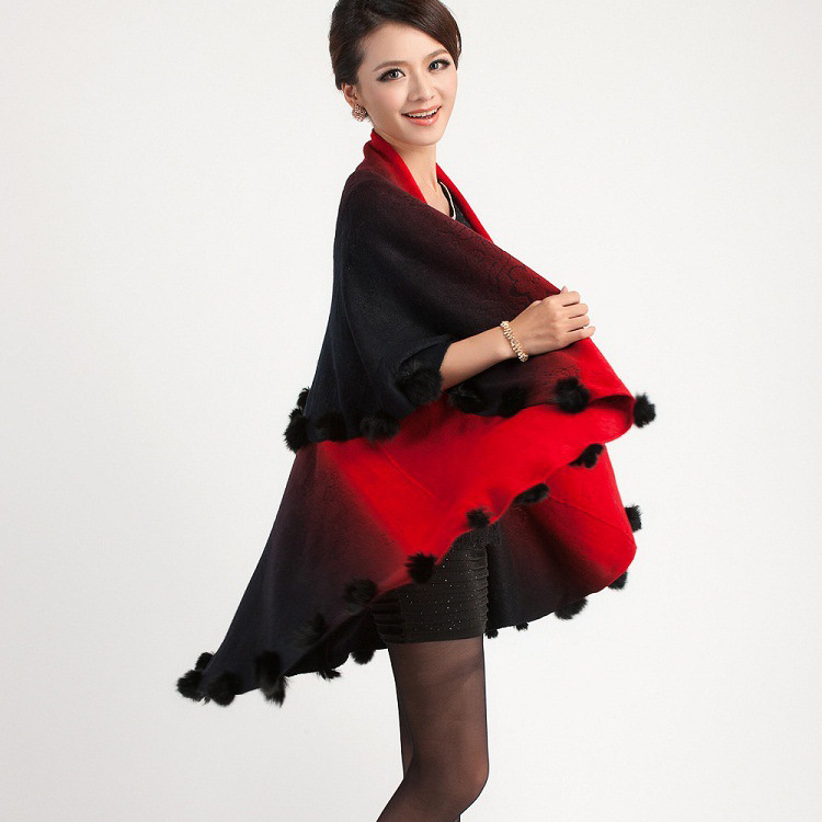 2015春秋新款中老年媽媽大碼披肩披風斗篷針織開衫毛衣外套女 /