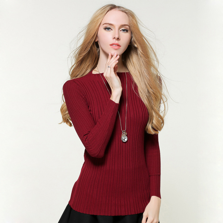大朗秋冬韓版長(zhǎng)袖毛衣女裝套頭毛織衫 女修身大氣針織打底毛織衫 /