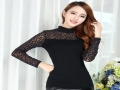 大碼女裝長袖t恤 女款秋2015新品韓版休閑修身上衣打底衫網(wǎng)紗小衫 /