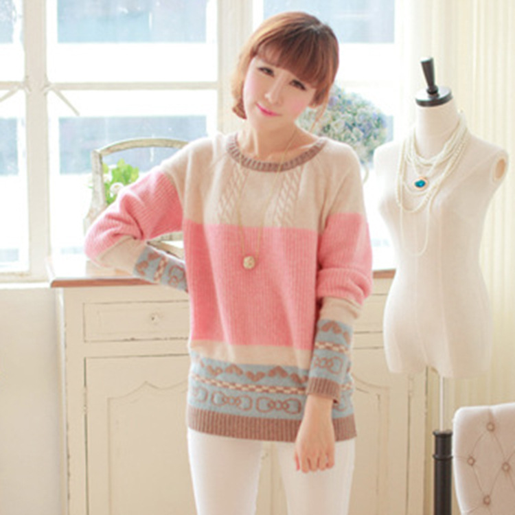 2015新款女士毛衣打底衫韓版女套頭小清新學(xué)院派針織衫女裝外套 /