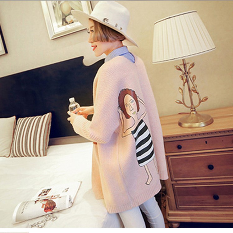 2015秋裝新款原創(chuàng)插畫圖案毛衣女外套時尚針織開衫超值 /