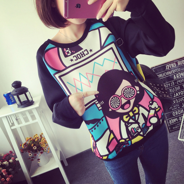 秋冬韓版學院風閨蜜原宿風數(shù)碼印花套頭太空棉短款學生衛(wèi)衣女代發(fā) /