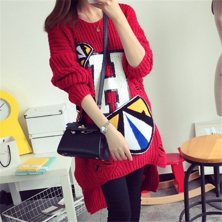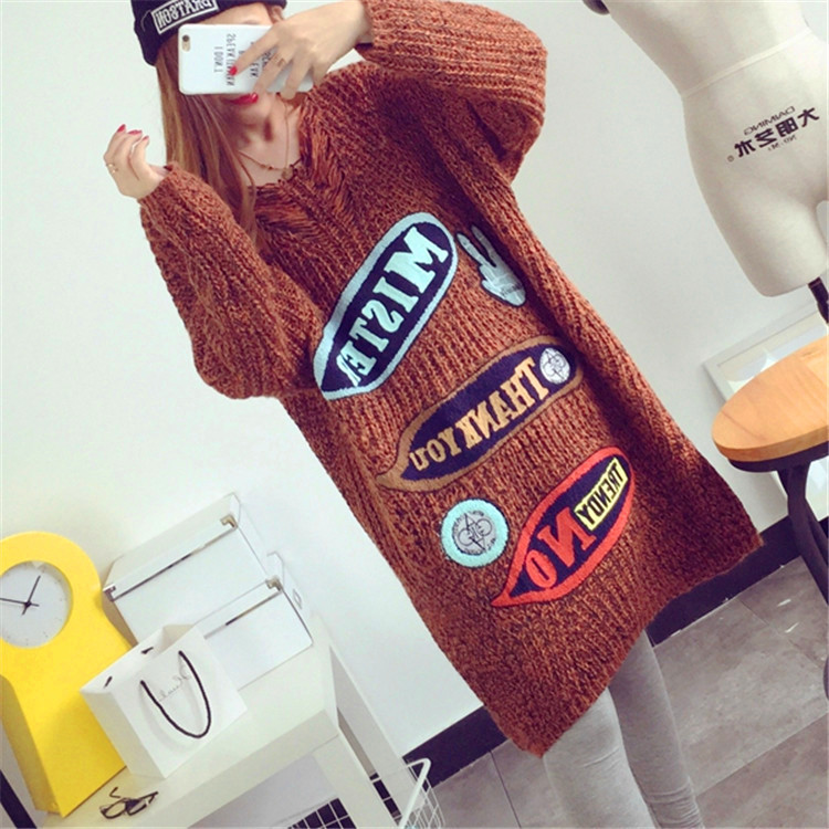 2015秋裝新款韓版套頭毛衣外套針織貼標字母圖案學(xué)生女裝厚款批發(fā) /
