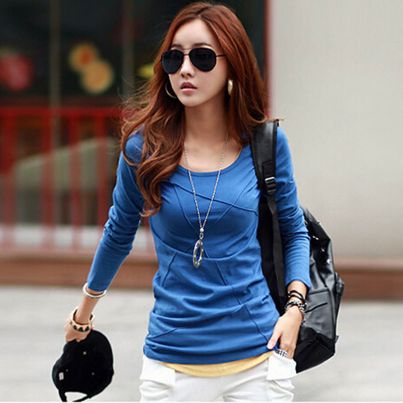 2015秋冬新款韓版女裝修身長(zhǎng)袖T恤純棉打底衫免費(fèi)加盟一件代發(fā) /