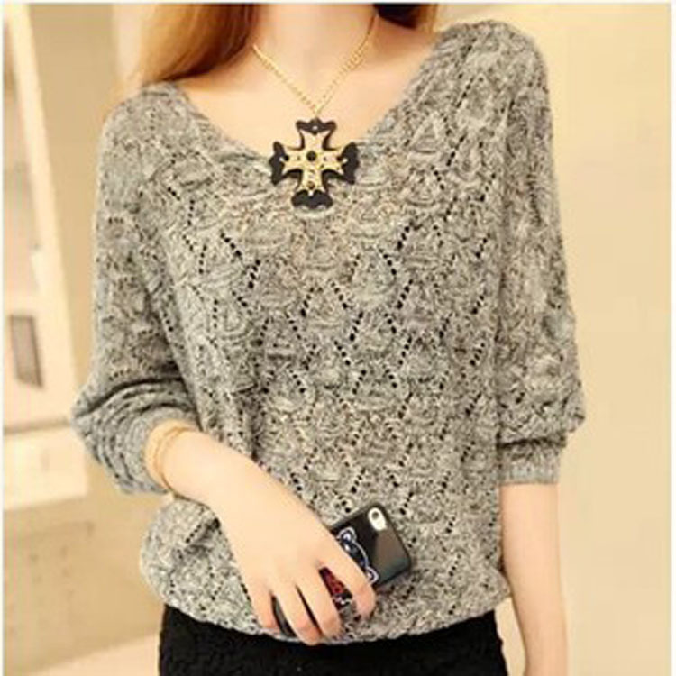 韓國2015初秋新款女裝打底針織上衣 V領薄款 性感拼接寬松針織衫 /