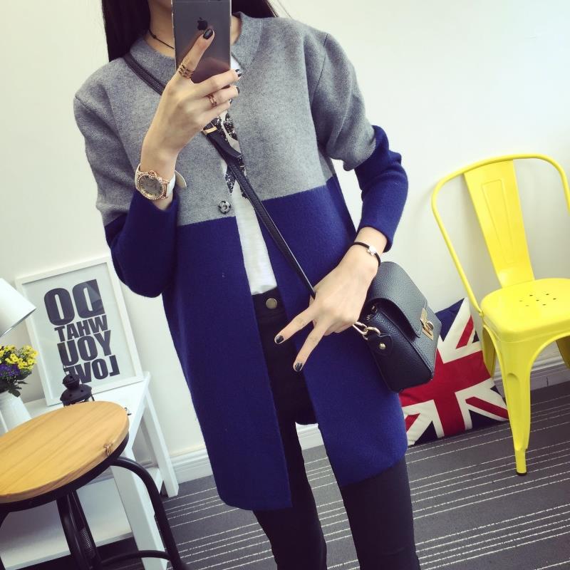 廠家直銷2015秋季女裝韓版秋裝女撞色毛衣修身中長款針織衫女開衫 /
