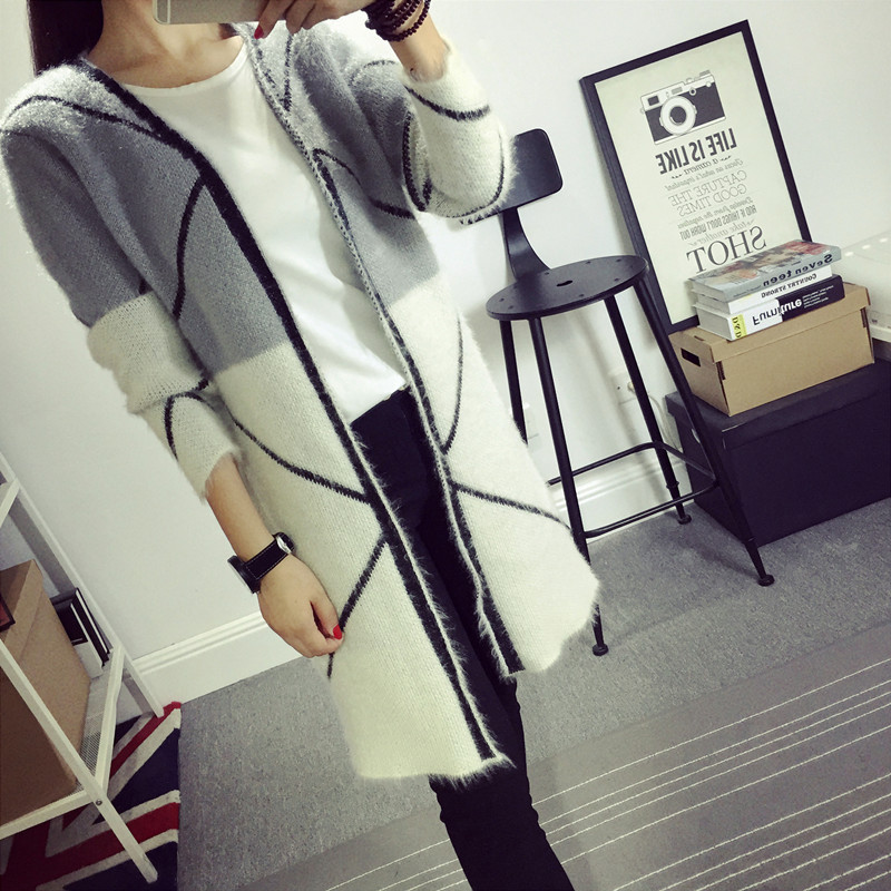 2015秋冬新款韓國毛衣女中長款女士開衫針織衫厚外貿(mào)毛衣冬季外套 /