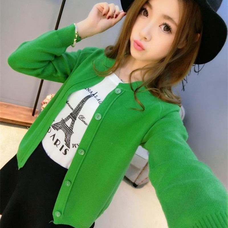 2015秋新款韓版糖果色純色女裝針織衫毛衣秋季外套女短款小開衫 /