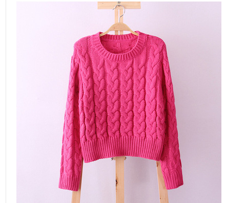 2015春秋新款森林系復古高腰時尚短款麻花編織套頭毛衣女潮 /