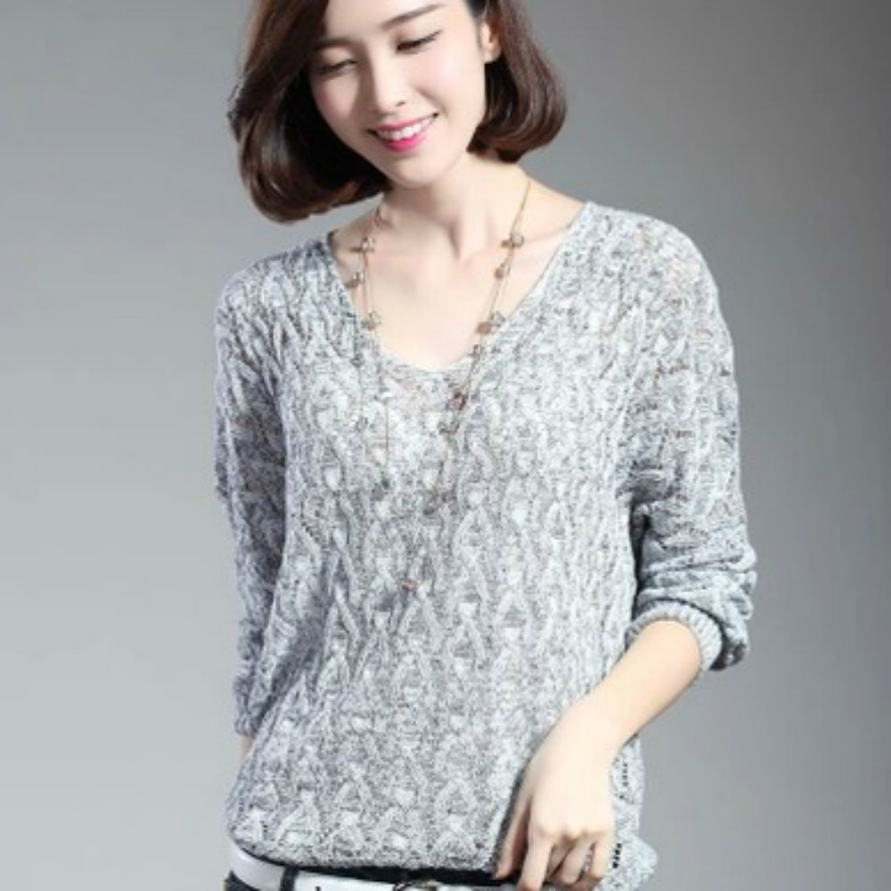 2015秋季新款v領毛衣打底衫女式勾花鏤空韓版套頭長袖毛衣批發(fā)薄 /