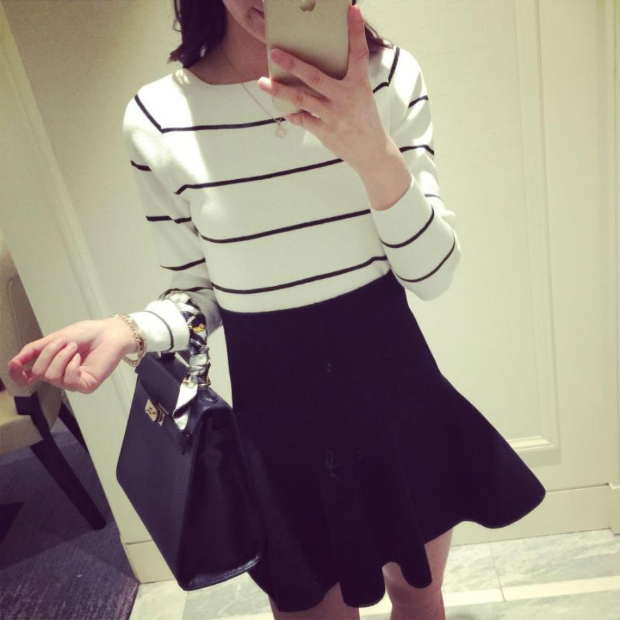 春裝新款2015打底衫針織衫一字領毛衣女條紋女士秋冬潮外套套頭 /