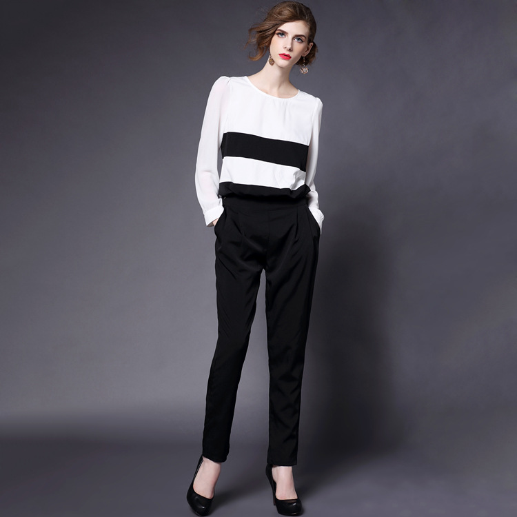 歐洲站女裝2015秋裝新款寬松長(zhǎng)褲 歐美時(shí)尚顯瘦可拆卸條紋連體褲 /