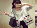 2015秋季新品實拍女式士針織薄開衫外套韓版國中長款條紋毛衣批發(fā) /