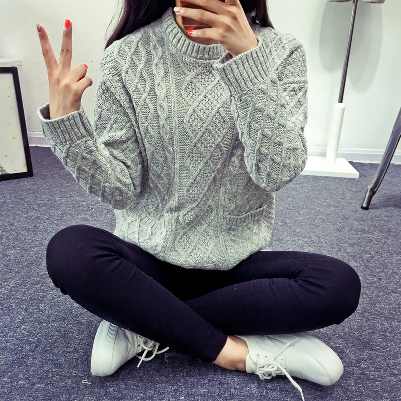 針織衫2015秋季新品長袖女式士套頭毛衣純色韓版上衣女裝一件代發(fā) /