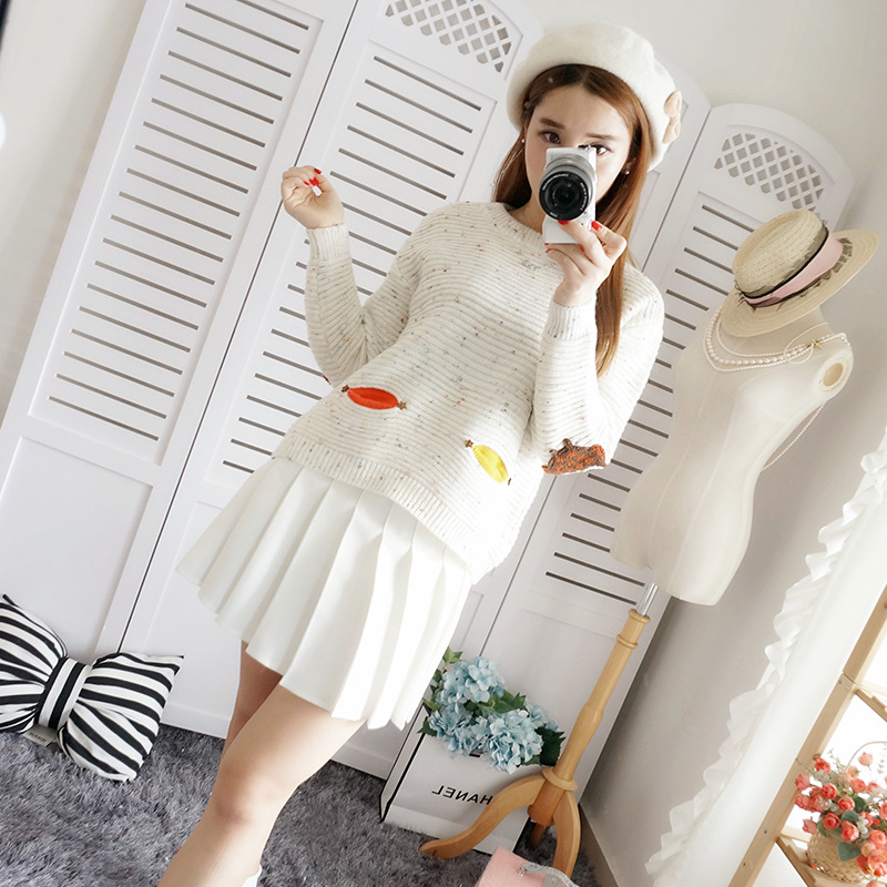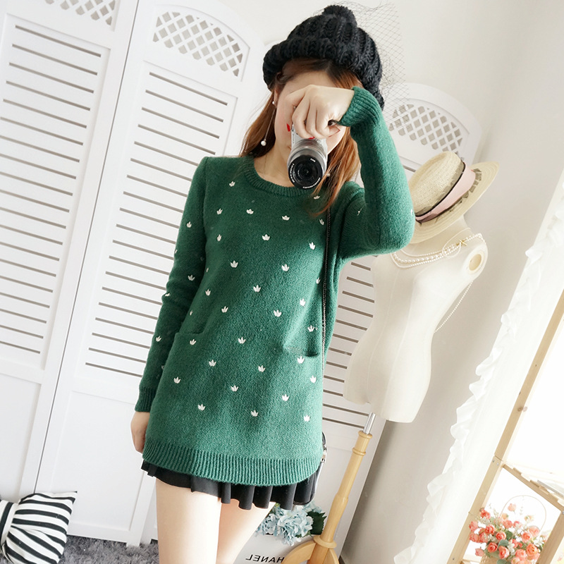 針織衫2015秋季新品女式圓領(lǐng)套頭韓版長袖毛衣印花外套批發(fā)代理 /