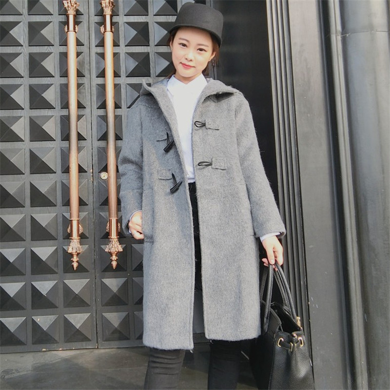 2015秋冬季新品女裝韓版修身呢子外套時尚氣質(zhì)連帽中長款大衣女潮 /