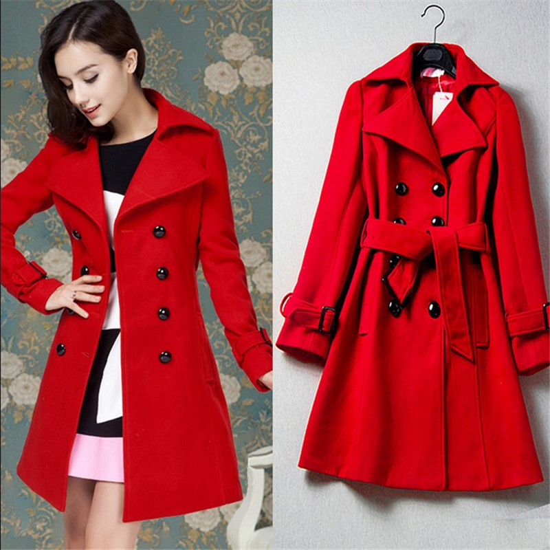 歐洲站2015秋冬新款歐美大牌雙排扣中長款氣質(zhì)修身羊毛呢外套女潮 /