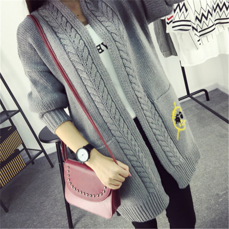歐洲站2015秋季新款女裝卡通繡花寬松毛衣針織衫麻花門襟開衫外套 /