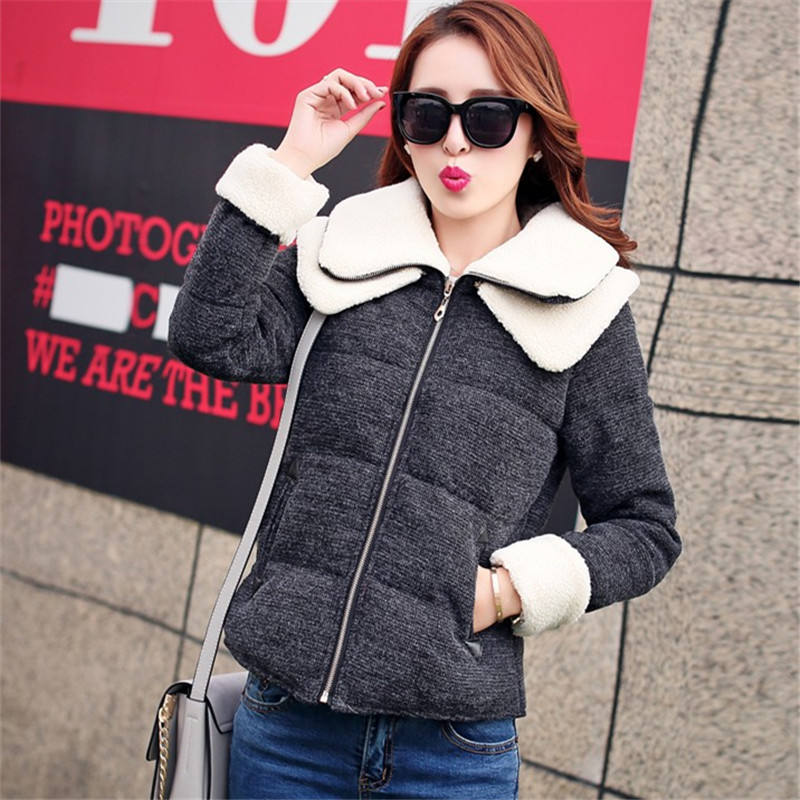 韓版2015秋冬季新款棉衣女時尚百搭毛呢羊羔毛短款氣質(zhì)修身羽絨服 /