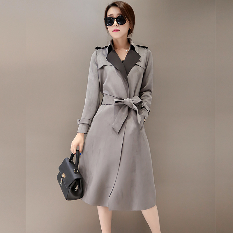 2015秋冬新款氣質(zhì)女式風(fēng)衣 時(shí)尚韓版麂皮絨大衣中長款長袖外套 /