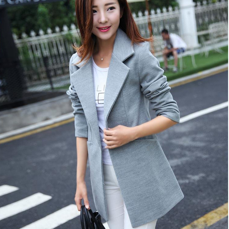 2015秋冬季新款韓版中長款毛呢外套 女式西裝領(lǐng)氣質(zhì)大衣女 /