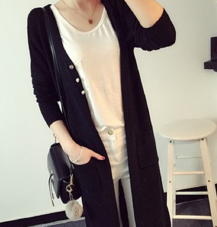 2015新款 秋冬針織衫開衫女 韓版超長純色薄款寬松毛衣外套女 /