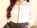 • 韓版2015春季新款小香氣質(zhì)稻穗絨邊拼接立體裁剪女式襯衫批發(fā) /